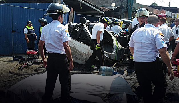 Bomberos y rescatistas recuperaron los cadáveres de seis de las siete víctimas de esta tragedia vial, ocurrida ayer en el km 18 de la Ruta Interamericana. Cortesía @BVoluntariosGT