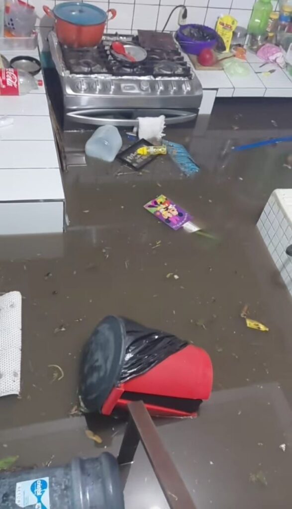 Ese panorama se repitió en varias de las viviendas de la comunidad, donde el agua cubrió la primera planta y amenazaba con alcanzar el siguiente nivel de los hogares.