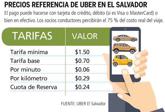 En El Salvador, la tarifa mínima de Uber es de $1.50 por cada viaje. El servicio será para los usuarios del Gran San Salvador.