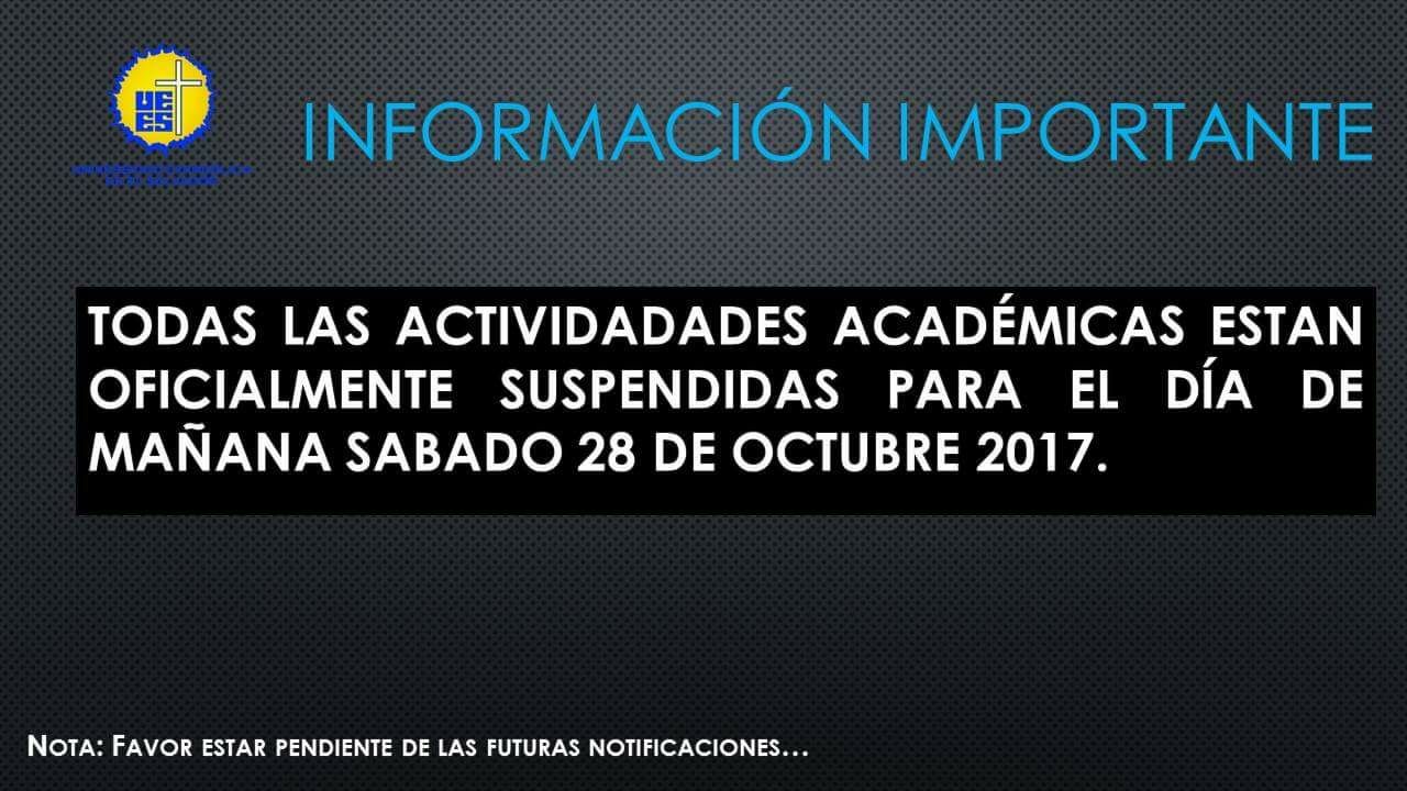 También la Universidad Evangélica de El Salvador suspendió las clases este sábado.