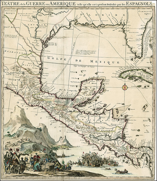 FRAGMENTO DEL MAPA DE PIERRE MORTIER publicado en Ámsterdam, en 1703. Se destaca la extensión territorial del Reino de Guatemala, desde Chiapas hasta Costa Rica. Imagen cortesía del Norman B. Leventhal Map Center, Biblioteca Pública de Boston (Estados Unidos).