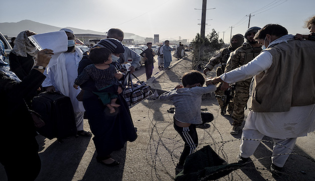 En esta foto de Juan Carlos, una familia cruza el alambre razor que rodeaba el aeropuerto de Kabul para ser evacuados.