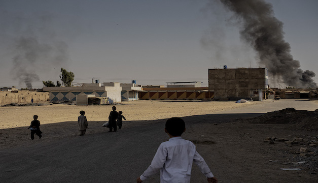 Así como la mañana se acercaba, siguieron los intercambios pero se empezaron a escuchar más cerca. Eso me hizo sentir que el Talibán ya estaba en el centro de la ciudad. A las 6 de la mañana que salí, me di cuenta que el presentimiento de que estaban cerca, era cierto. Había humo en dos zonas del país y los combates continuaban. Decidí seguir mi instinto de fotoperiodista y le dije a mi “fixer” -el fixer es un colaborador local para periodistas extranjeros- que nos dirigieramos a la zona sur de Kandahar, el distrito 15. Al llegar, la gente huía porque el centro de la batalla estaba ahí.