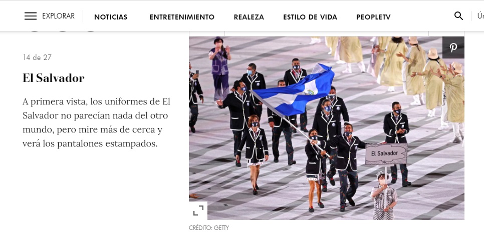 La revista People clasificó a los mejores 27 uniformes visto en el desfile de apertura y entre ellos figura El Salvador. La periodista Andrea Wurzburger describe al vestuario del Team ESA: "A primera vista, los uniformes de El Salvador no parecían nada del otro mundo, pero mire más de cerca y verá los pantalones estampados".