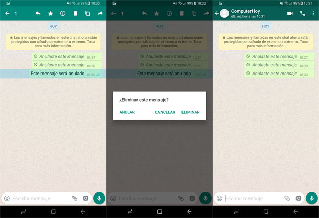 En la última versión de WhatsApp 2.17.184 (Beta) ha aparecido la opción de anular un mensaje.