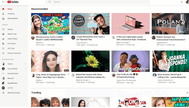 El nuevo diseño incluye títulos más largos y miniaturas más completas y las vistas previas tienen una mejor resolución. Para que el diseño de la página resulte más despejado, se han eliminado algunos bloques de contenido, y los iconos de los canales se han añadido debajo de cada vídeo, para que resulte más fácil reconocer a los creadores.