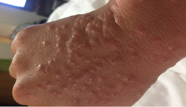 Dijo que estas lesiones afectan las manos y los pies y pueden parecerse a las pequeñas hinchazones con picazón de los sabañones.