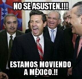 "No se asusten!! Estamos moviendo a México", se podía leer impreso sobre imágenes del presidente, Enrique Peña Nieto, en composiciones creadas con agilidad por tuiteros que no han dudado en bromear con esa recurrente expresión del mandatario mexicano.