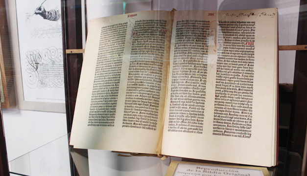 Con una máquina de 1830, similar a la que utilizó el orfebre germano para imprimir la primera Biblia, empieza el recorrido de la imprenta en ese espacio inundado de metales y silencio.