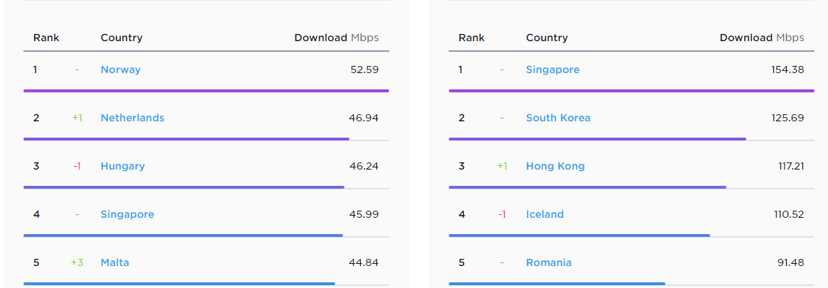 Holanda y Hungría están clasificados en la segunda y tercera posición de la lista de redes móviles más rápidas del mundo, añadió el diario.