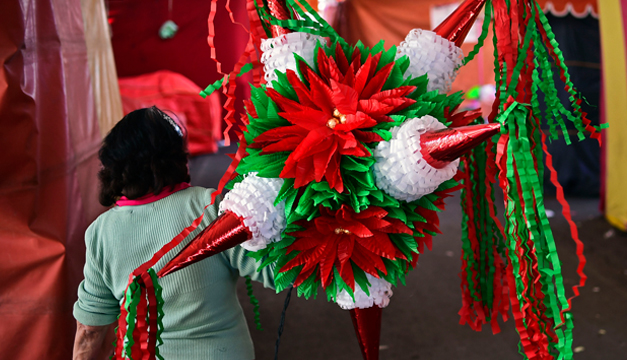 Con sus formas infinitas y vivos colores, las piñatas son un elemento central de las fiestas navideñas en México.