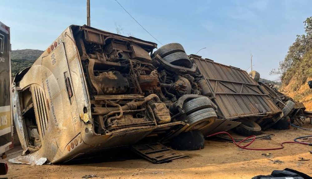 El vuelco ocurrió durante la madrugada en un tramo sinuoso y en bajada de la carretera BR-381, a las afueras de Belo Horizonte, capital del estado.