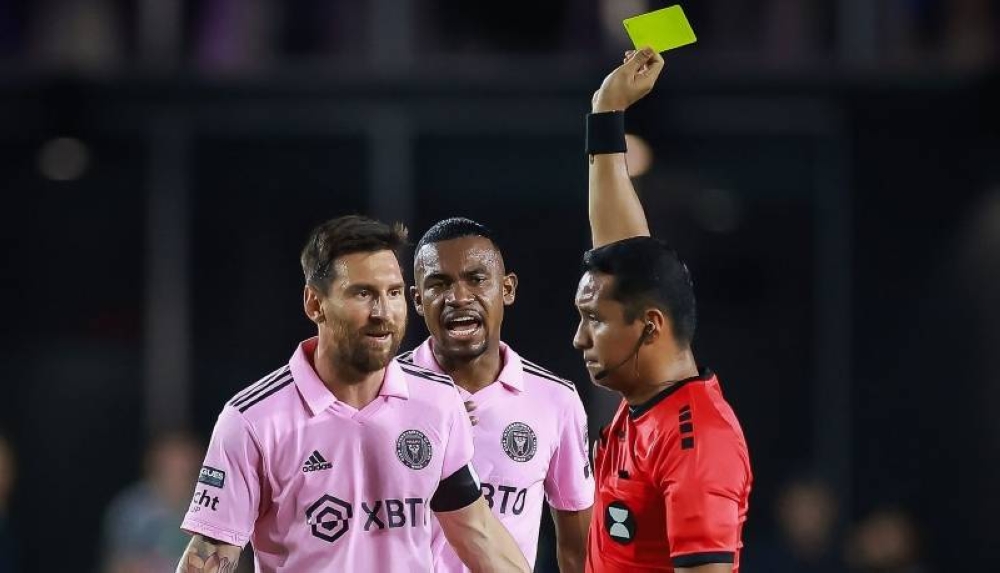 Lionel Messi brilló en el partido con el Inter Miami que derrotó por 3-1 al Orlando City y clasificó a octavos de final de la Leagues Cup. El astro argentino marcó un doblete y ya lleva cinco goles en el torneo, pero en este juego no quedó exento de la amonestación del árbitro salvadoreño, Iván Barton, que le sacó tarjeta amarilla al campeón del mundo.