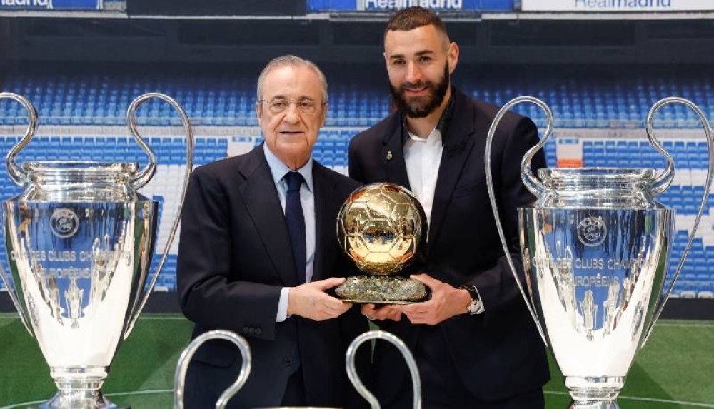 "Tenía apenas 21 años fue a mi casa con mis padres, y cuando te vi, pensé es el hombre que ha traído a Zizou (Zinedine Zidane), a Ronaldo (Nazario) y ahora me quiere en su equipo. Muchas gracias", dijo Benzema al presidente del Real Madrid.