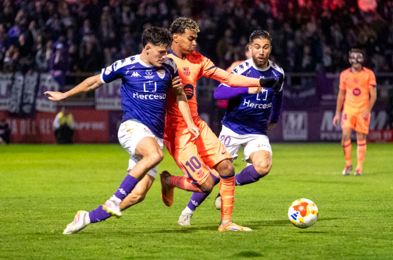 Fermín tiraba del carro desde la izquierda mientras que Lamine percutía en zona de tres cuartos en busca del último pase, mientras que los once jugadores locales basculaban como un acordeón para tapar todos los huecos.