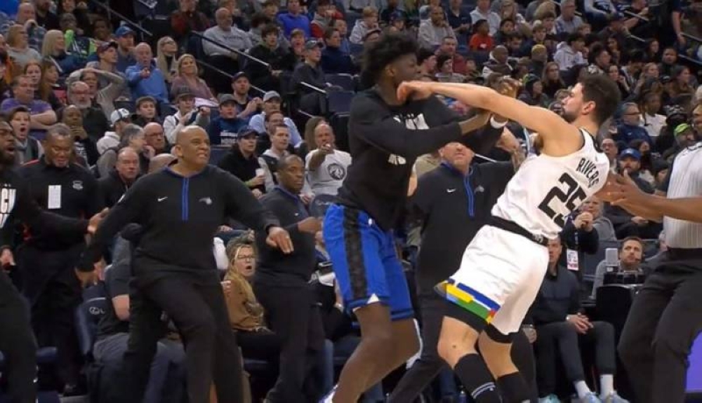 Rivers, escolta de los Timberwolves e hijo del técnico Doc Rivers (Sixers), se encaró con Bamba, que estaba sentado en el banquillo de los Magic, tras un intercambio de palabras.