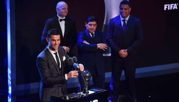 El portugués Cristiano Ronaldo recibió por segundo año consecutivo el premio FIFA al mejor jugador del año, en una ceremonia celebrada este lunes en Londres.