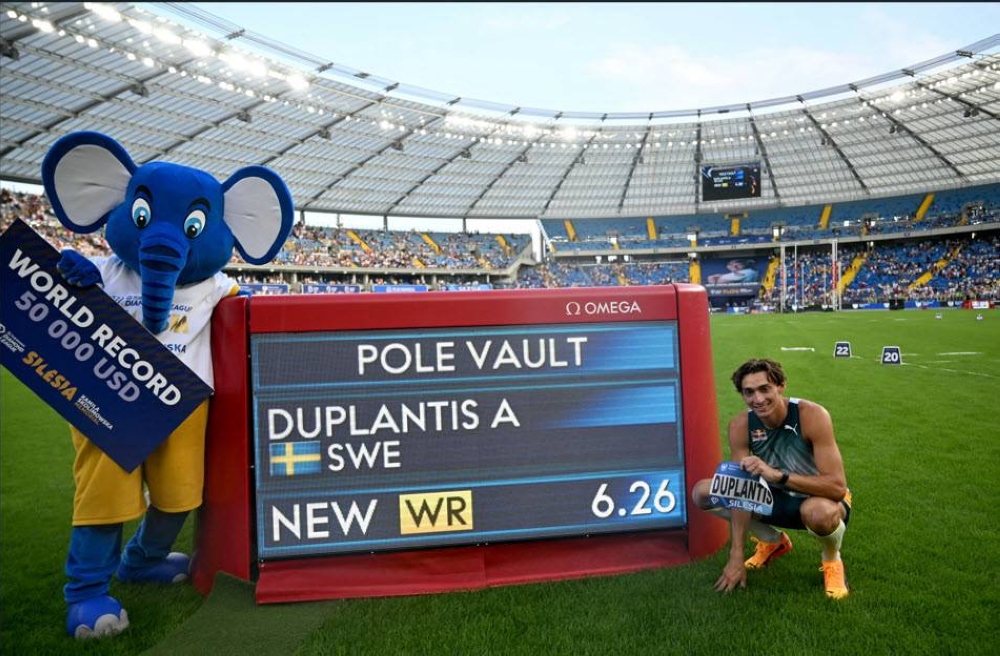El sueco Armand Duplantis mejoró su récord del mundo de salto con garrocha al superar este domingo, en su segundo intento, una barra a 6,26 metros en la reunión de la Liga de Diamante de Chorzów, en Polonia.