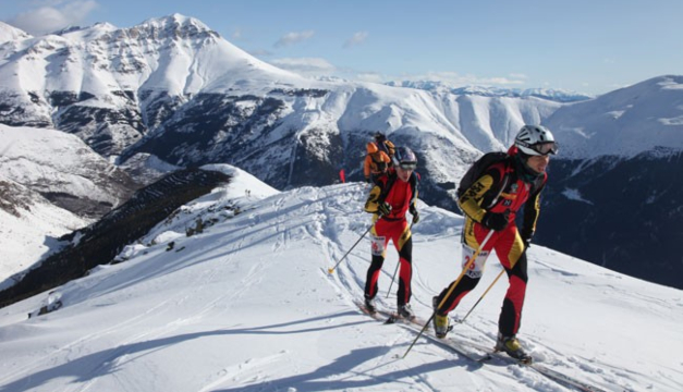 El esquí alpinismo propone ascensiones con esquíes ligeros equipados de piel de foca o a pie con los esquíes en la bolsa cuando la pendiente es muy pronunciada y luego descenso con los esquíes en los pies.
