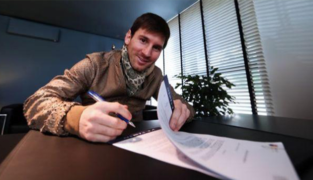 El argentino Lionel Messi rompe un récord al formalizar su contrato con el FC Barcelona por cuatro años más. Según informa ‘The Sunday Times’ citando una fuente del club español, el futbolista pasaría a recibir una remuneración semanal de más de 1,3 millones de dólares.