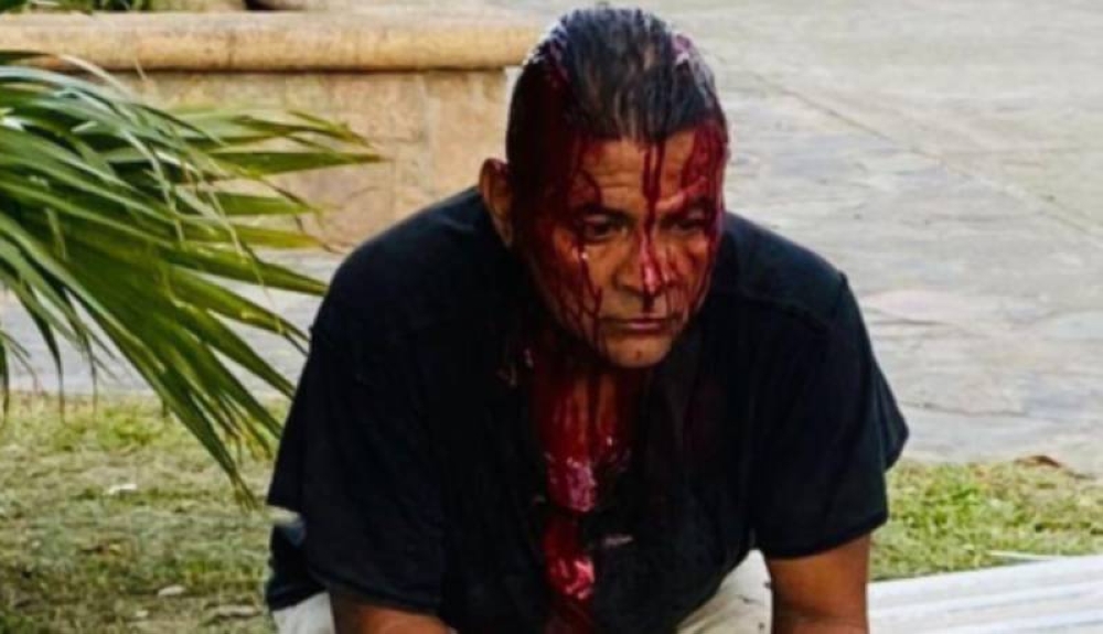En otras imágenes se mira a Alexis Duarte cabizbajo con el rostro lleno de sangre.