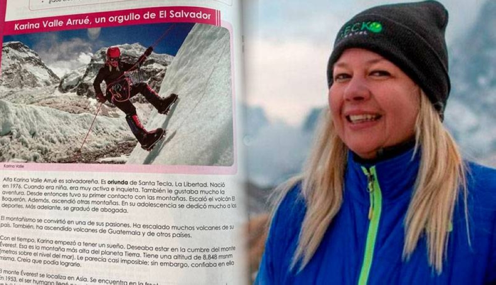 La historia de la alpinista Karina Arrué, quien se convirtió en la primera mujer salvadoreña en conquistar el monte Everest, será parte de los libros de texto que se distribuyen a nivel nacional en las escuelas públicas de Guatemala.