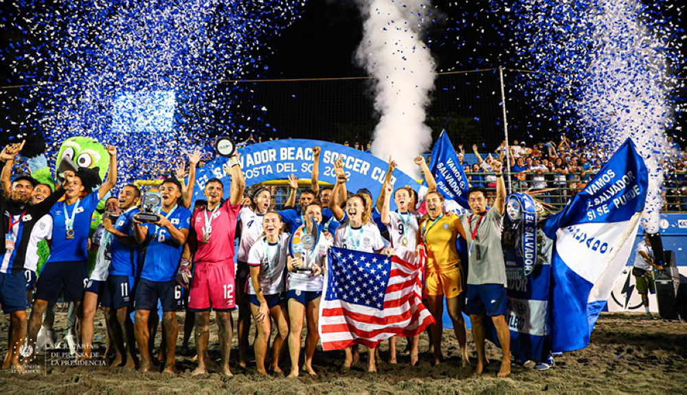 #ElSalvadorBeachSoccerCup | Pese al gran esfuerzo y empeño de las nacionales no fue posible. El Salvador perdió el encuentro 1-3 ante Estados Unidos. El combinado norteamericano es campeona de la cuadrangular El Salvador Beach Soccer Cup Costa del Sol 2022. pic.twitter.com/P3HMxAfd2A
