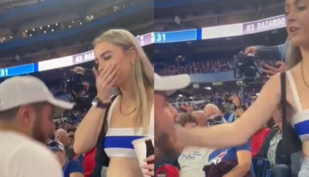 El hecho ocurrió en el estadio Rogers Centre ubicado en Canadá, cuando la pareja acudió al recinto para ver el partido entre Toronto Blue Jays y Boston Red Sox de la Major League Baseball.