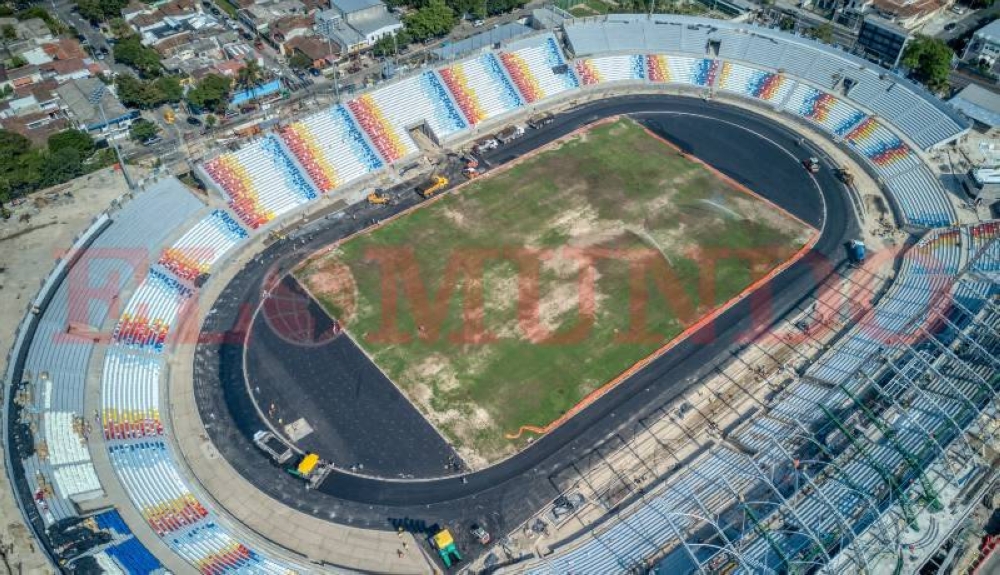 Las butacas se han colocado en al menos un 75% en el estadio, además, que ya se trabaja con la colocación de una capa de asfalto previo a la que será la pista de atletismo.