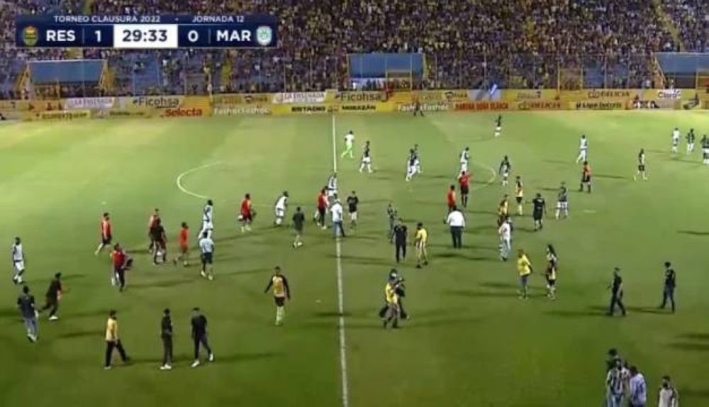 Tal y cómo sucedió en México en el encuentro entre Querétaro y Atlás como en El Salvador en el juego entre Firpo y Águila, en las imágenes difundidas, aficionados de Real España y Marathon arman trifulca y de acuerdo a lo que informaron medios hondureños como “Diez”, ambas barras se tornaron en una batalla con piedras que obligaron a la seguridad del recinto a abrir el sector preferencial del estadio para que las familias que no estaban involucradas se metieran a la cancha para evitar cualquier riesgo.
