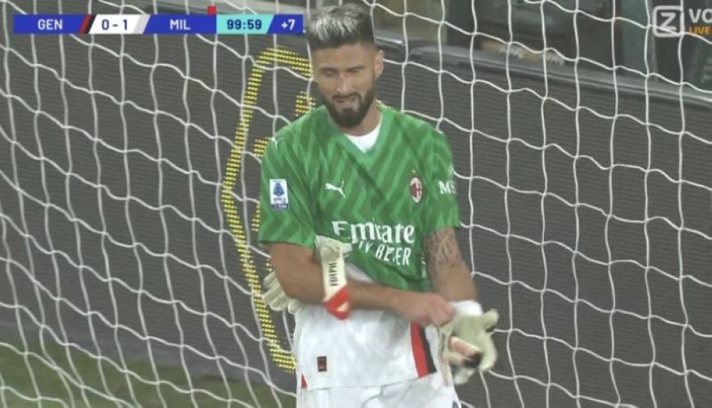 Al haber realizado el técnico del Milan sus cinco sustituciones permitidas, Giroud, máximo goleador de la historia de la selección francesa, improvisó como meta y logró una atajada en dos tiempos que permitió a su equipo llevarse los tres puntos.