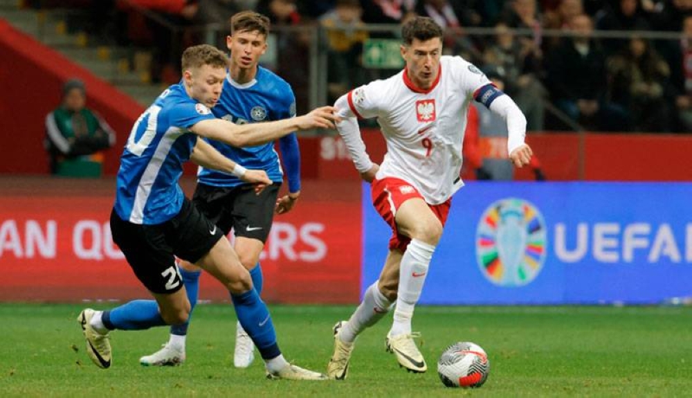 Robert Lewandowski todavía puede estar en la Eurocopa: el atacante estrella de Polonia no marcó pero su equipo goleó 5-1 a Estonia, este jueves en Varsovia, y se clasificó a la final de la Ruta A de la repesca, donde se disputará el boleto al torneo contra Gales, que superó 4-1 a Finlandia.