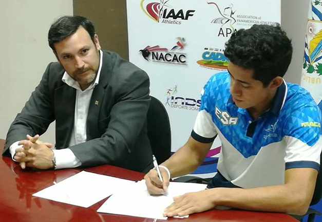 El atleta salvadoreño, Natan Rivera, especialista en salto con pértiga, firmó ayersu contrato de beca completa con la Rice University Houston, donde estudiará, desde agosto próximo, la carrera de Ingeniería Mecánica y seguirá su preparación con el objetivo que es clasificar a los Juegos Olímpicos de Tokio 2020. Dicho contrato tendrá una duración de cuatro años (2018-2022) y tiene un valor cercano a los $400 mil.