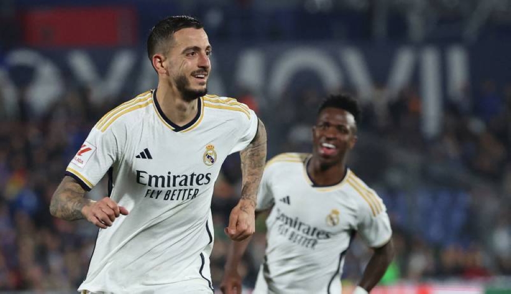 Los goles de Joselu (14, 56) permitieron a los merengues superar al Girona -57 puntos por 55- en la cabeza de LaLiga antes de su crucial y complicado derbi contra el Atlético de Madrid del domingo en la próxima fecha liguera.