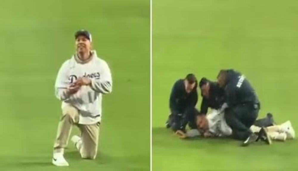 Según se observa en un video viral, el joven saltó la valla e irrumpió el juego de este 30 de marzo. El fan de LA Dodgers corrió un pequeño tramo y luego se arrodilló para pedirle la mano a su pareja que estaba en las gradas.