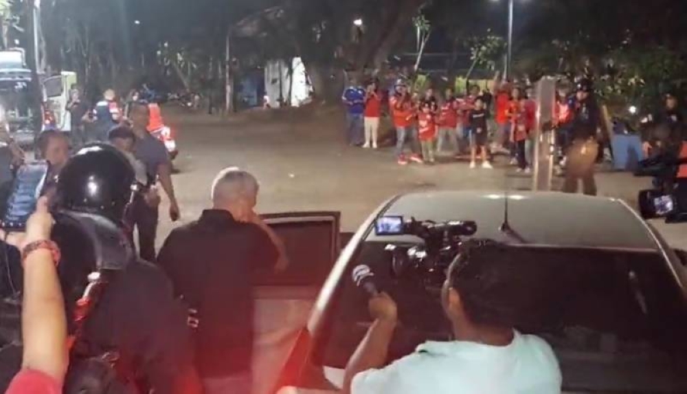Escoltado por agentes de la UMO, así salió el técnico Octavio Zambrano del camerino de FAS, tras la derrota 1-3 ante Jocoro. @Fanaticos21 @juegodirectofc pic.twitter.com/zryoPxgHwK