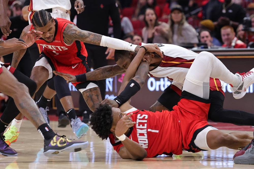 El alero de Houston Amen Thompson, con dos partidos, y el escolta de Miami Terry Rozier, con uno, fueron suspendidos este martes por la NBA por su participación en la pelea que estalló en los últimos segundos del juego Rockets-Heat del domingo.