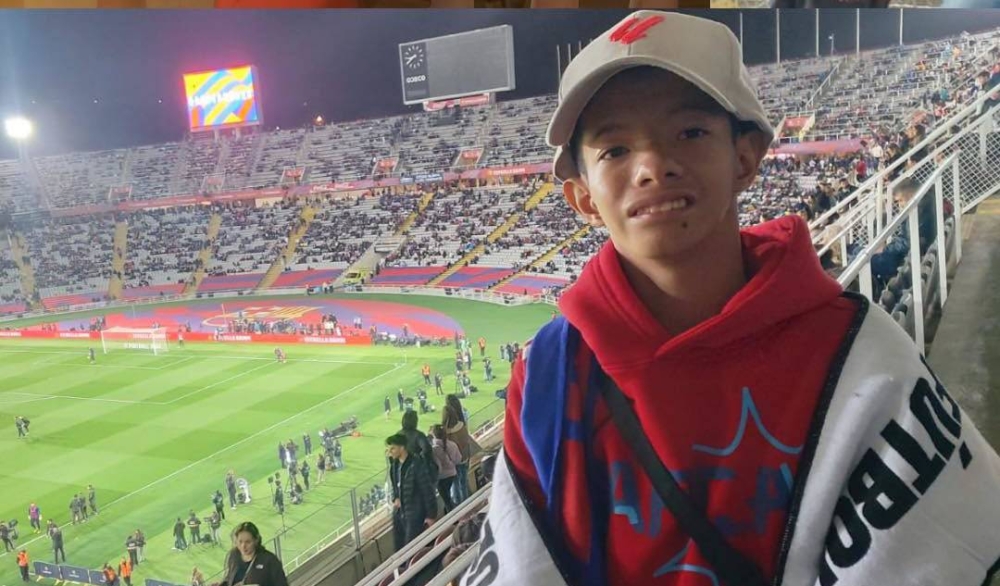 Levi Sandoval en el Estadio Olímpico de Montjuic, viendo al Barcelona.
