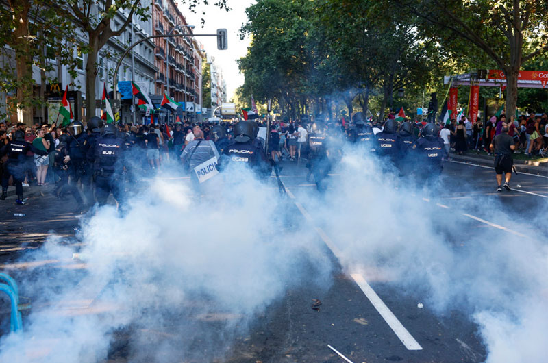 Deportes Cargas policiales y lanzamientos de vallas y botellas en la etapa final de la Vuelta en Madrid domingo 14, septiembre 2025 - 4:10 p. m.