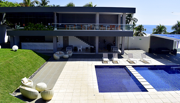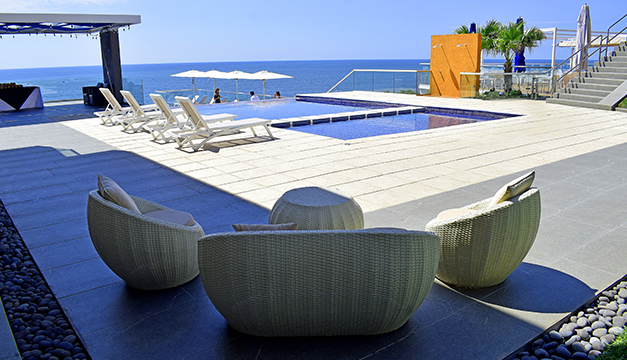 El complejo cuenta con siete niveles, distribuidos en un hotel boutique, salones de conferencia, restaurantes y piscinas. El hotel, con un diseño minimalista, tiene 19 habitaciones temáticas de tipo sencilla, doble e imperial, disponibles en tres diferentes diseños: Bahía, Arrecife y Acantilados. Todos los cuartos tienen vista al mar y las amenidades de cualquier hotel de ciudad, explicó Orellana.