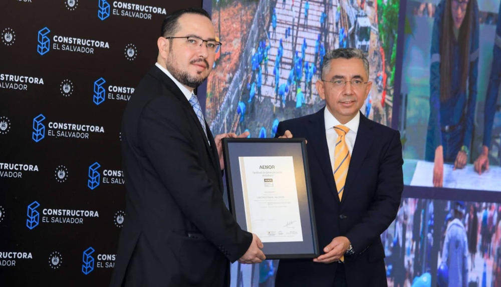 La Constructora El Salvador recibió este martes la certificación internacional del Sistema de Gestión Antisoborno ISO 37001, otorgada por parte de la Asociación Española de Normalización y Certificación (AENOR).