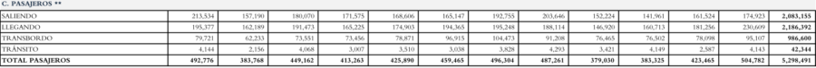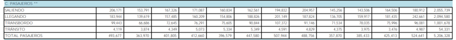 También los pasajeros en transbordo subieron un 1.5 %, al pasar de 986,600 viajeros en 2024, a más de un millón para el 2025.