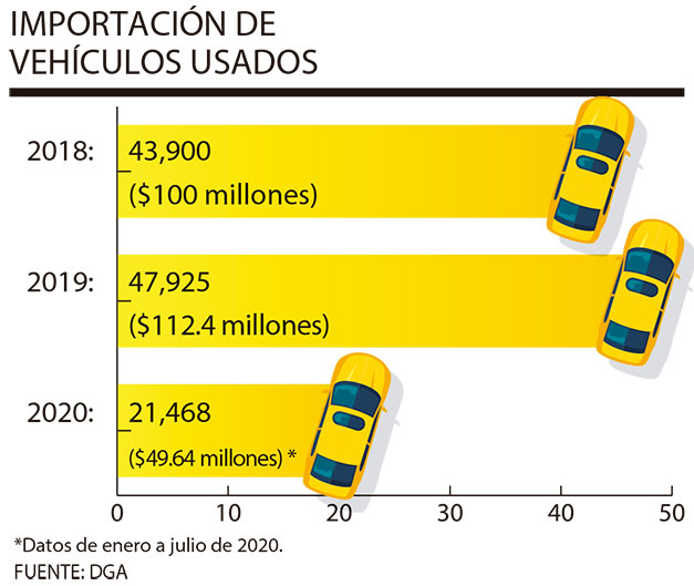 “El problema es que el carrito que nosotros traemos los precios normalmente andan desde los $5,000 en adelante, pero el carro que se está vendiendo está entre los $3,000 y los $6,000, pero nuestro costo nunca es menor de $5,000”. Óscar Cerna Representante de la Asociación de Importadores de Vehículos y Repuestos AutomotricesLas estadísticas oficiales revelan que el sector ha experimentado un fuerte incremento en los últimos dos años. Aduanas reporta que en 2018 se importaron 43,990 unidades usadas, mientras al cierre de 2019 el sector registró el ingreso de 47,925 vehículos, es decir 3,935 adicionales.