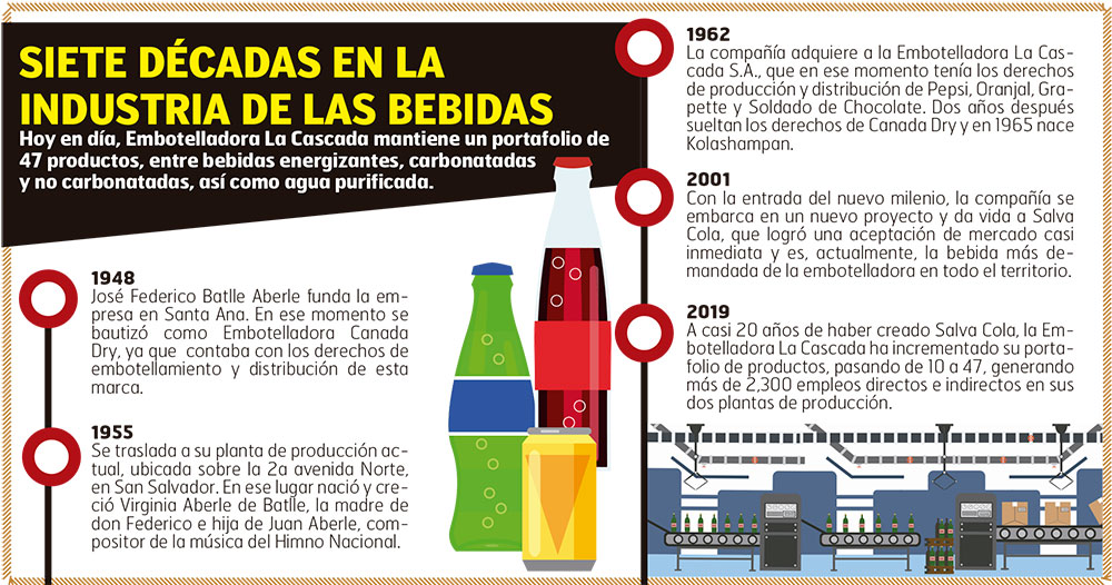 Desde hace más de siete décadas, la Embotelladora La Cascada (ELC) elabora refrescos icono de las tradiciones salvadoreñas, con precios accesibles que han posicionado sus productos en todo el territorio nacional, Centroamérica y Estados Unidos.
