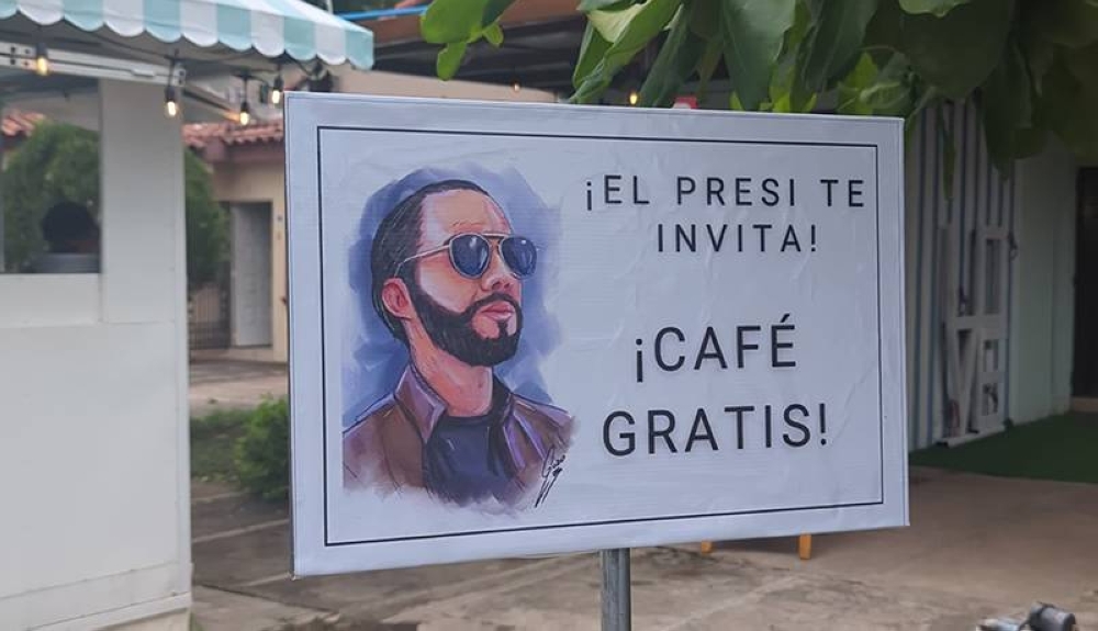 Uno de los negocios a los que Bukele ha regalado café se anuncia con su rostro. /Bean of Fire