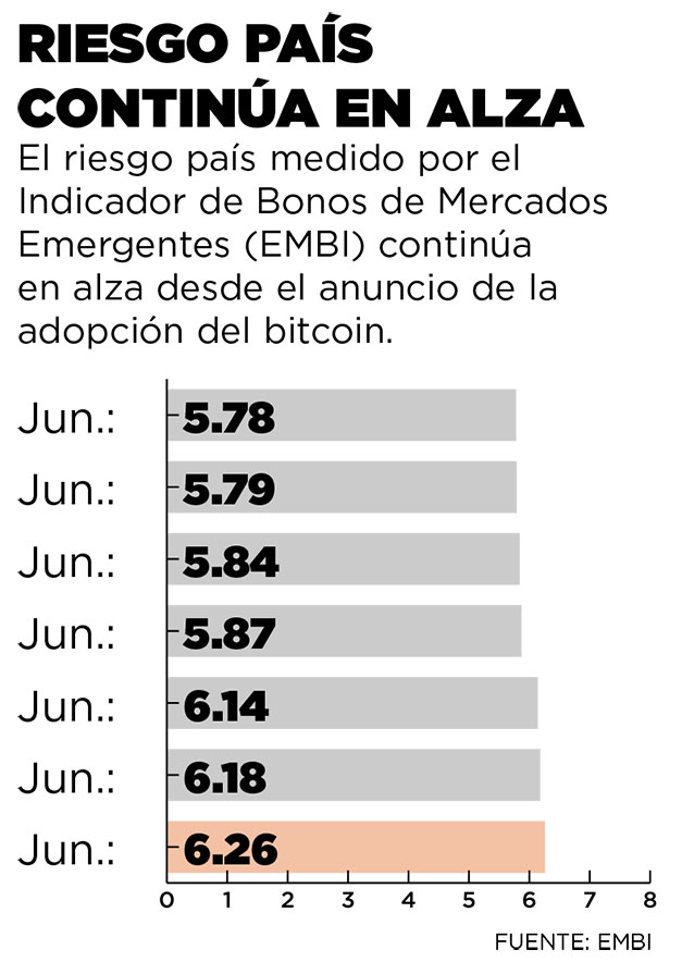 El precio de los bonos mostró caídas en la jornada del lunes 7 de junio luego que se conociera que El Salvador buscaría adoptar el bitcoin como moneda de curso y conviviría con el dólar. Esta disposición se aprobó en la medianoche del martes y miércoles, sin estudio y consultas con expertos, por parte de los diputados de la Asamblea Legislativa.Al cierre de la jornada de ayer, horas después de las declaraciones del FMI, el precio de los bonos salvadoreños cerró con caídas y algunos llegaron a niveles incluso más bajos que los observados el 1 de mayo cuando se desplomaron tras la destitución de los magistrados.