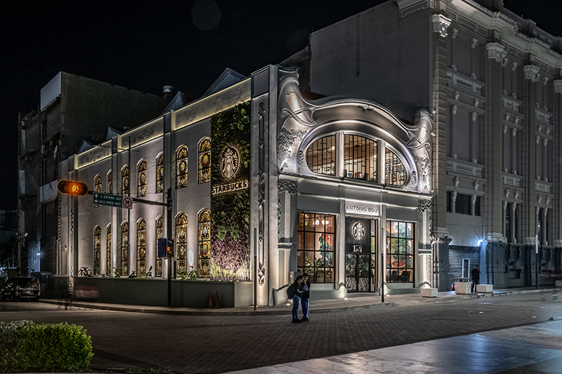 Durante la inauguración de su primera cafetería insignia en América Latina, ubicada en el emblemático edificio Antonio Bou del centro histórico de San Salvador, Heberto Rivera, gerente general de Starbucks Latinoamérica y el Caribe, detalló que actualmente la marca cuenta con 32 establecimientos en el país, lo que representa el 33 % de las 96 tiendas que operan en Centroamérica.