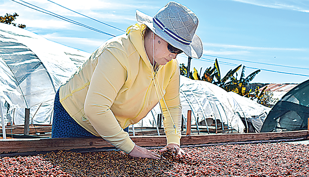 Llegadas las siete de la mañana, Reyes se coloca un sombrero para protegerse del sol y se dirige a las camas de secado de café, donde comienza a revolver el grano ya despulpado. Con una jornada laboral de ocho horas, se convierte en una de las únicas tres mujeres que laboran en los patios de secado de la cooperativa.