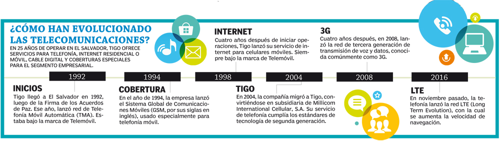 Ayer, en una reunión con periodistas, Marcelo Alemán, CEO de Tigo El Salvador, hizo memoria de como la compañía ha marcado fechas en la digitalización de las telecomunicaciones. Así pues, Tigo inició operaciones en 1992 con la red de Telefonía Móvil Automática (TMA), y en 1994 invirtieron en el Sistema Global de Comunicaciones Móviles (GSM, por sus siglas en inglés). Mientras que en 1998 lanzaron el servicio de internet en los teléfonos móviles.