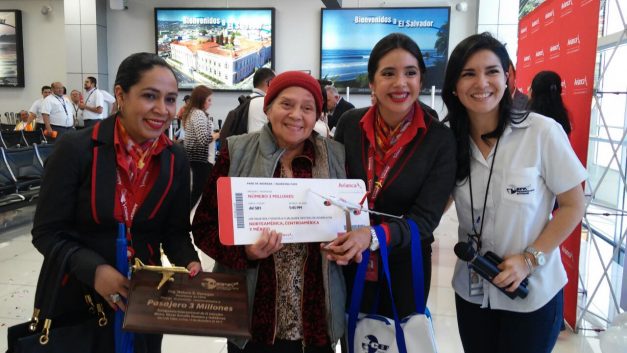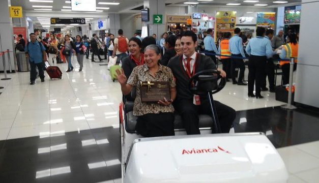 "Doy gracias a Dios, amo a Dios, a mi gente, a mi país", agregó la pasajera, quien se llevó una placa conmemorativa por parte de CEPA y la aerolínea en la que viajó, Avianca, le dio un paseo por la instalaciones de la terminal aérea.